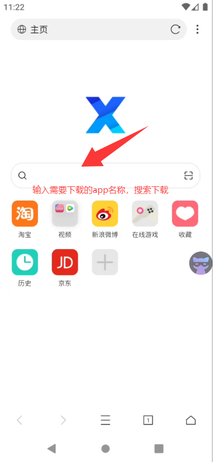 1、打开无痕猫内【X浏览器】,输入需要下载的app名称,搜索下载。